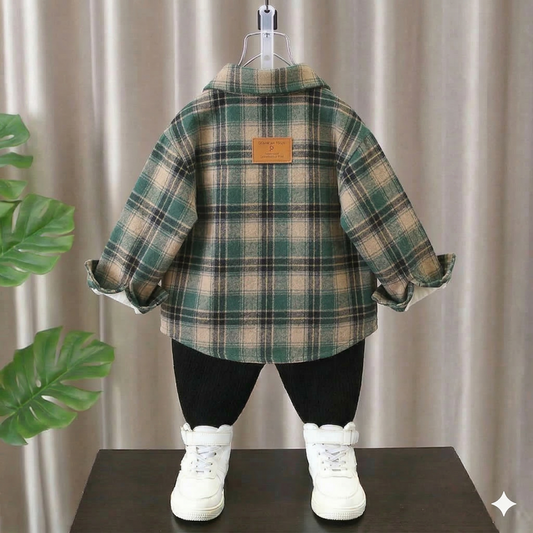 Boys' 3-Piece Modern Plaid Flannel Shirt, SURFLO Graphic T-shirt, and Jogger Pants Outfit Set