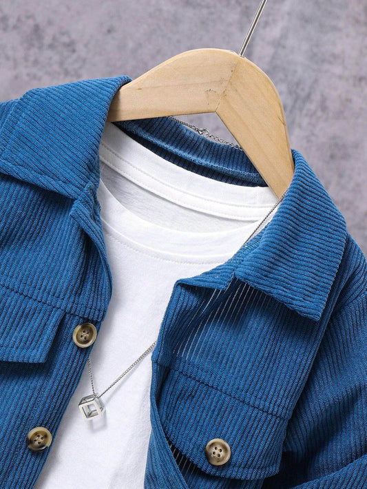 2 pieces Boys' Corduroy Jacket And Pants Set With Flap Detail