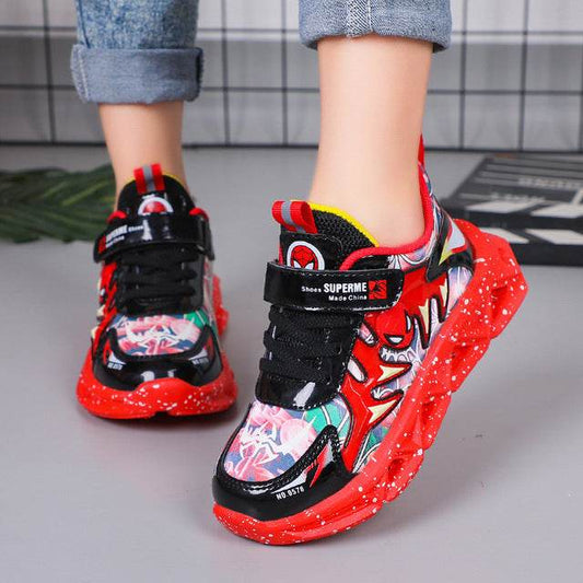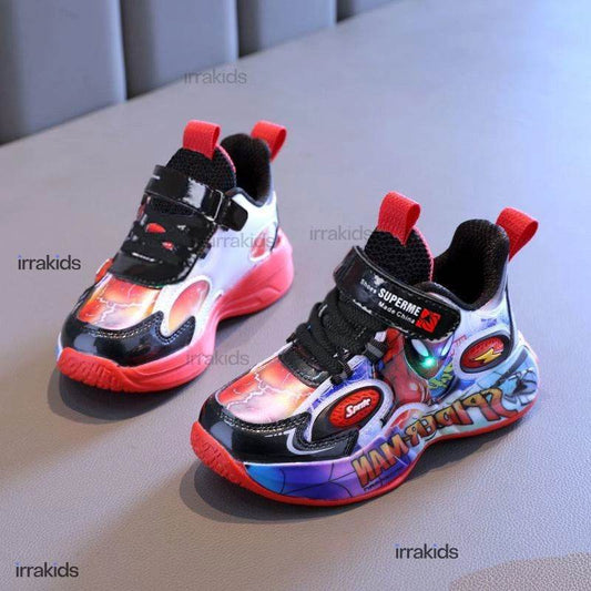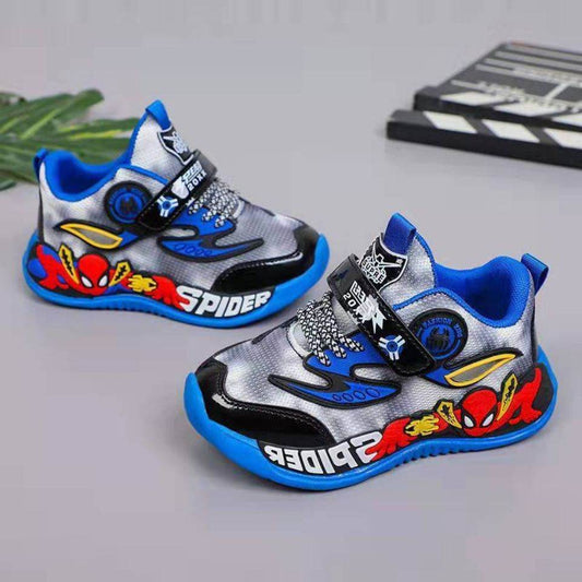 New Trendy Spiderman Sports Shoes for Boys: Featuring LED Lights & Easy to Wear Rotating Button