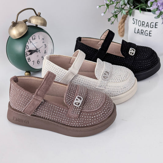 Luxury crystal embellished girls' shoes - elegance and comfort in every step!