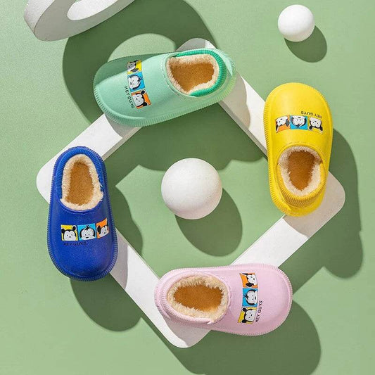 "Waterproof and Soft Kids Slippers - Breathable Cotton House Shoes, Cartoon Design, Winter"