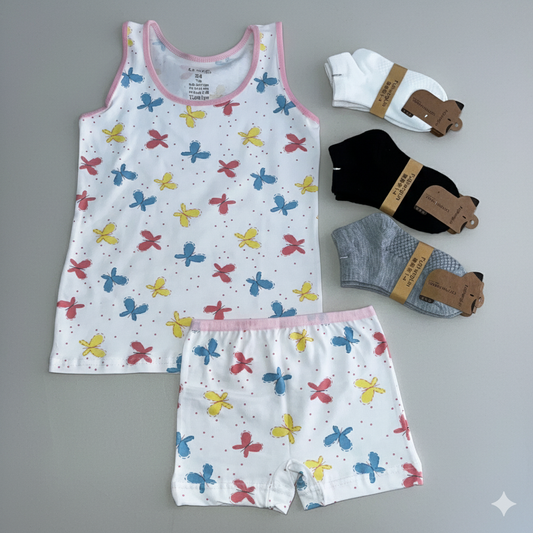 Ensemble de sous-vêtements en coton pour fille : 2 shorts imprimés et 3 chaussettes colorées