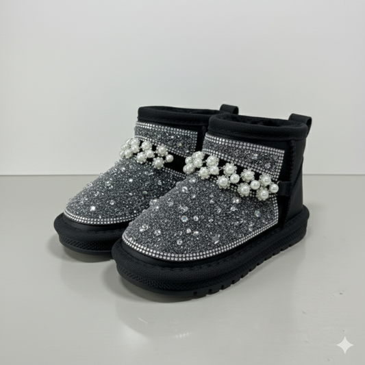 Bottes d'hiver à paillettes pour enfants avec perles – Chaussures montantes chaudes et antidérapantes doublées de fourrure pour filles,