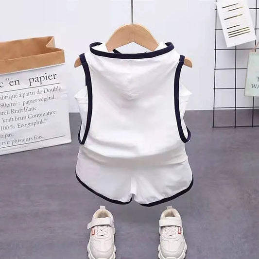 Ensemble deux pièces décontracté avec t-shirt et short à capuche sans manches et imprimé lettre