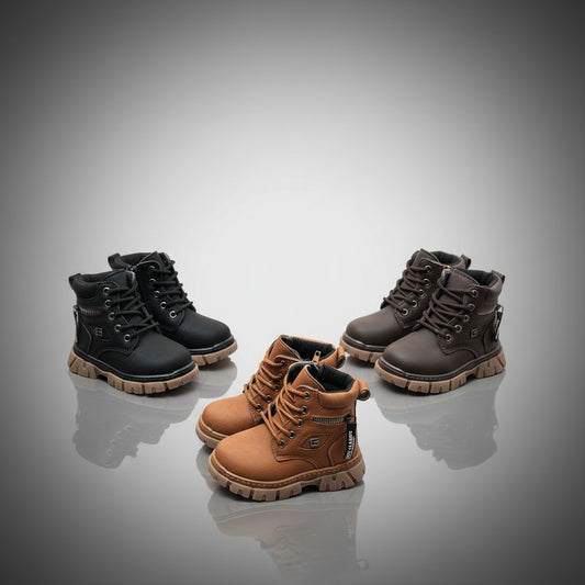 Bottes garçon avec fermeture éclair latérale – Noir, marron foncé et kaki | Chaussures d'hiver résistantes