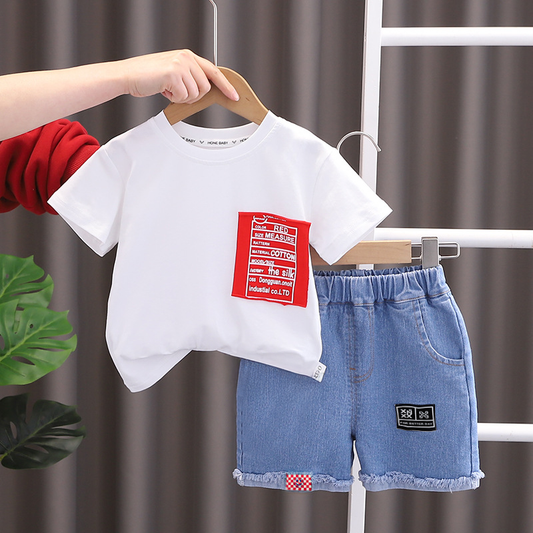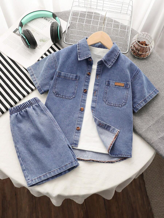 Ensemble d'été 3 pièces en jean pour tout-petit garçon : chemise, t-shirt et short