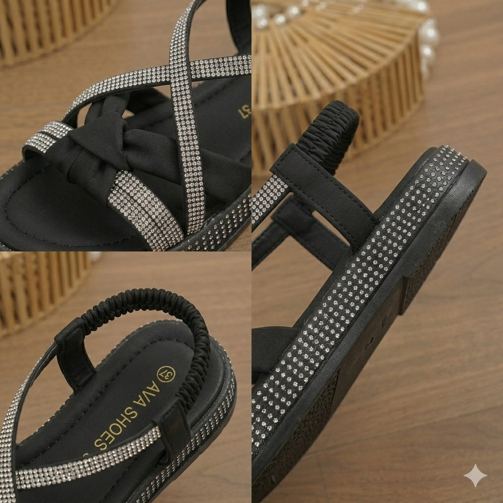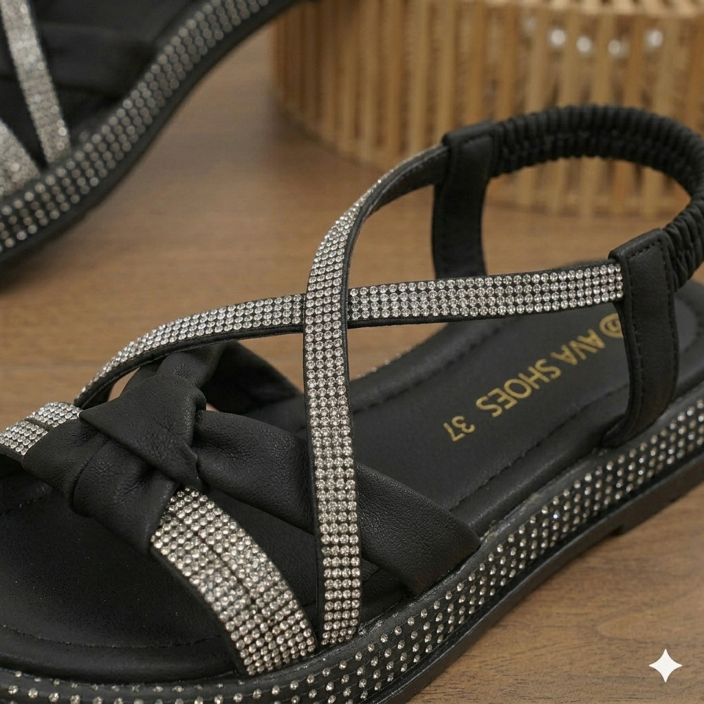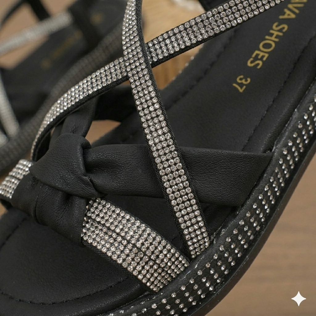 ✨ Design élégant à brides croisées avec des détails en strass