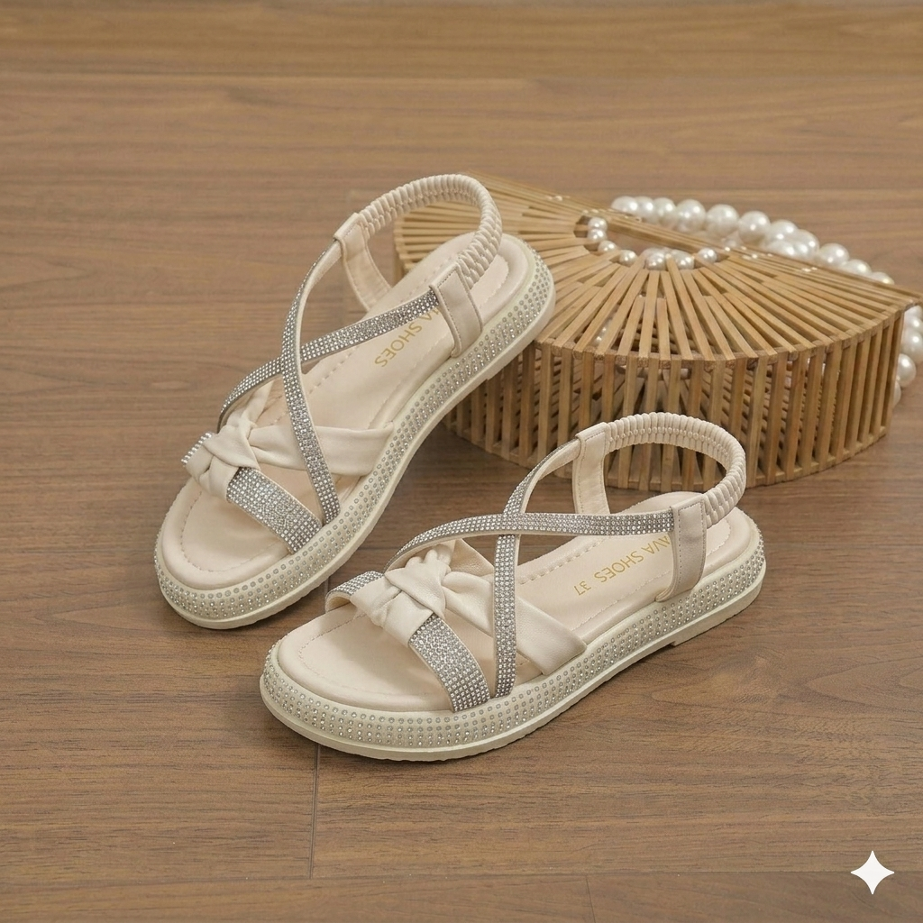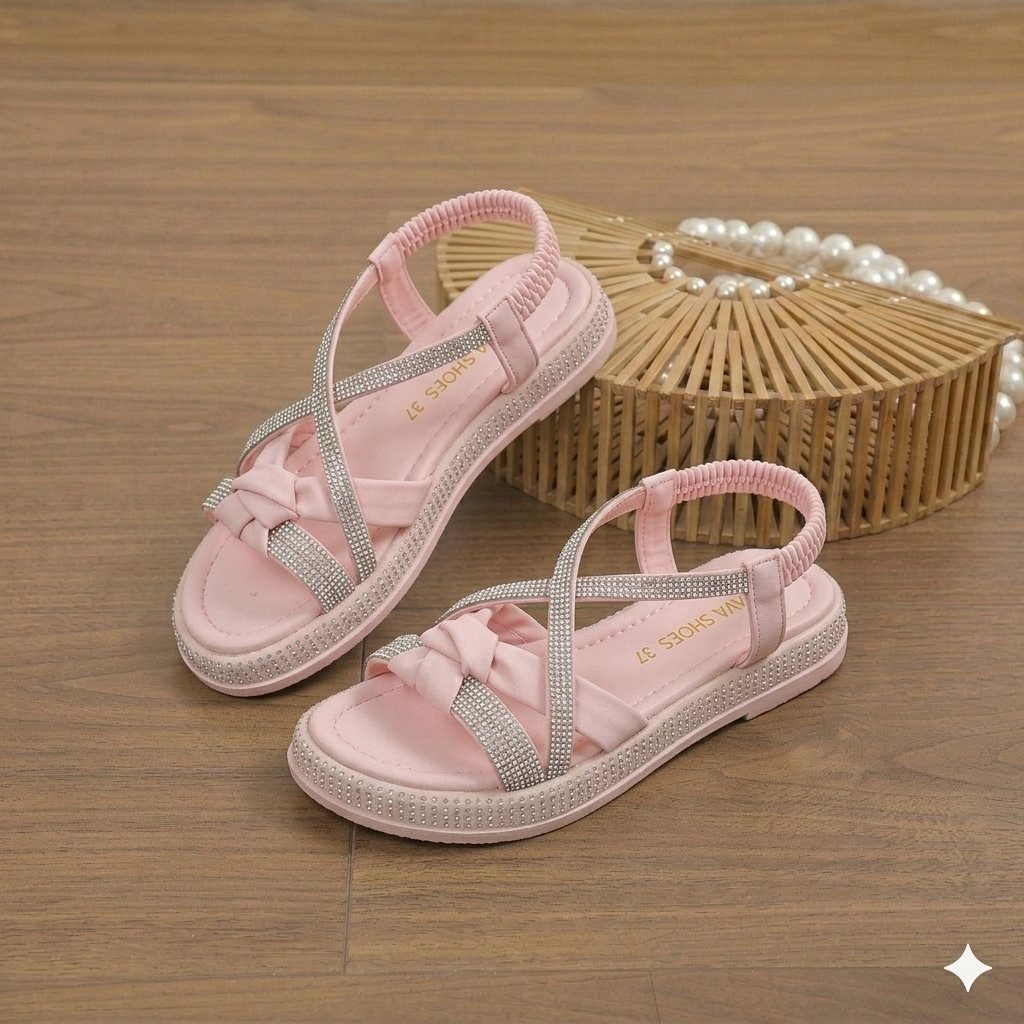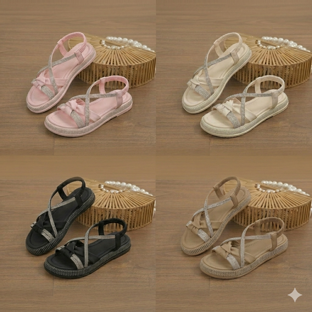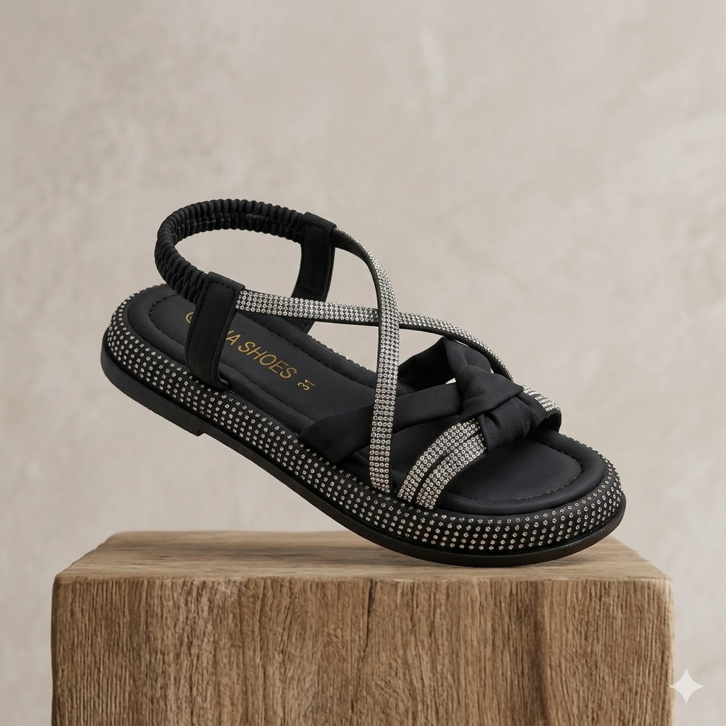 Rehaussez son style estival avec ces sandales tendance à brides croisées, conçues pour le confort et l'élégance. Dotées de brides étincelantes ornées de strass et d'une base douce et rembourrée, ces sandales offrent le mélange parfait de mode et de fonctionnalité. La bride arrière élastique assure un enfilage facile tout en offrant un maintien sûr pour les journées actives. Idéales pour les sorties décontractées comme pour les occasions habillées, ces sandales sont disponibles dans des couleurs polyvalentes pour s'adapter à toutes les tenues.